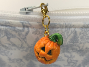Handmade realistic miniature pumpkin polymer clay charm for knitting or crocheting as a progress keepers and stitch markers.