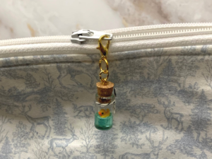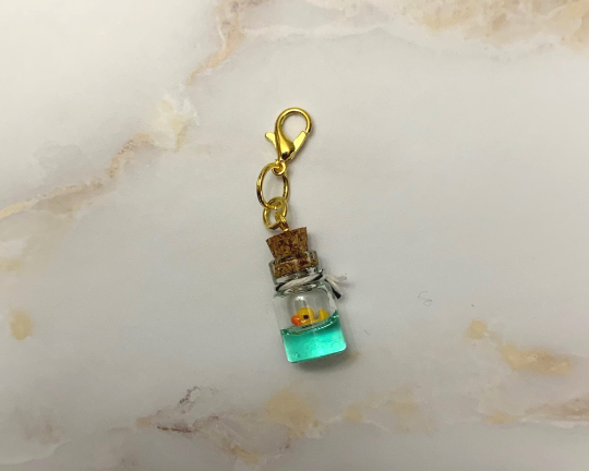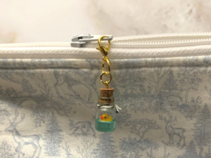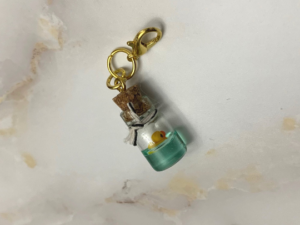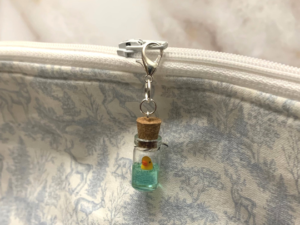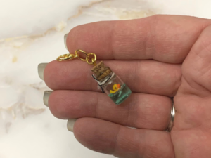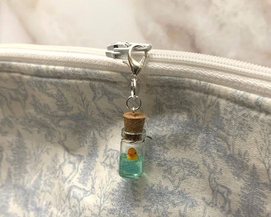 One of my most popular charms is my rubber duck… but this MICRO version may just be the cutest ones ever! This real glass bottle is partially filled with hardened epoxy which has been tinted a light blue. On top of that floats the smallest sculpted figure I have ever attempted – a micro version of my rubber duck! It will look so adorable on your knitting / crocheted projects, hanging from your project bag, zipper pull or anywhere you like. Makes a great gift or a special treat for yourself!
