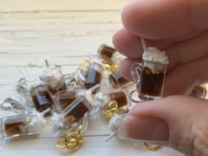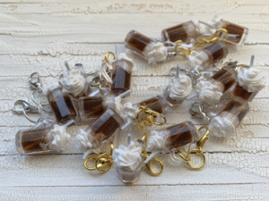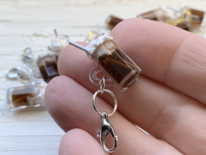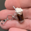 Handmade realistic root beer float miniature epoxy resin charm for knitting or crocheting as a progress keeper and stitch marker.