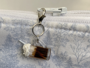 Yum! Here’s a frothy mug of root beer! Hang it from your project bag, zipper pull or anywhere you like. Makes a great gift or a special treat for yourself!