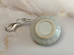 Hand sculpted from polymer clay on a miniature ceramic plate with either a gold or silver plated fork, every charm is unique and sealed with a non-toxic Varathane Diamond Finish for durability and accessorised with either a gold plated ring and gold tone lobster clasp or a silver plated ring and silver plated lobster clasp (please select). Bon appetite!